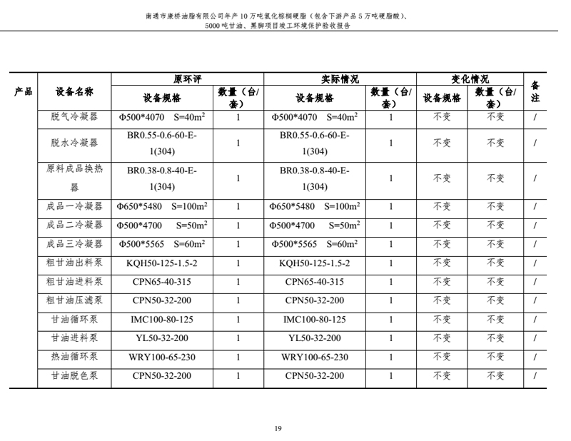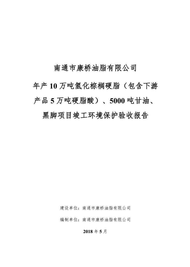 康橋油脂年產(chǎn)10萬噸氫化棕櫚硬脂、5000噸甘油、