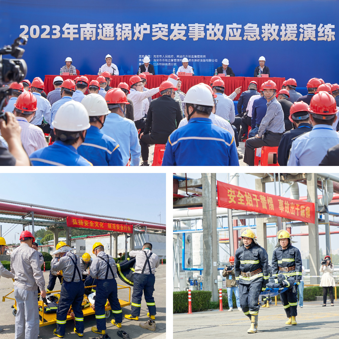 安全生產(chǎn),重如泰山。金秋10月17日,南通市2023年鍋爐突發(fā)事故應(yīng)急救援演練觀摩會在我司拉開序幕。演練模擬一臺導(dǎo)熱油鍋爐發(fā)生故障,引起導(dǎo)熱油泄漏遇靜電起火事故。演練設(shè)置為七個階段,充分利用現(xiàn)代應(yīng)急管理信息化技術(shù),依托海安市鍋爐雙控管理平臺,采取推演與實(shí)戰(zhàn)相結(jié)合的方法,通過 “制度化管理、實(shí)時化監(jiān)控、自動化阻隔、現(xiàn)代化救援”等手段,開展全要素、全過程、全指揮鏈的一次事故應(yīng)急救援演練。